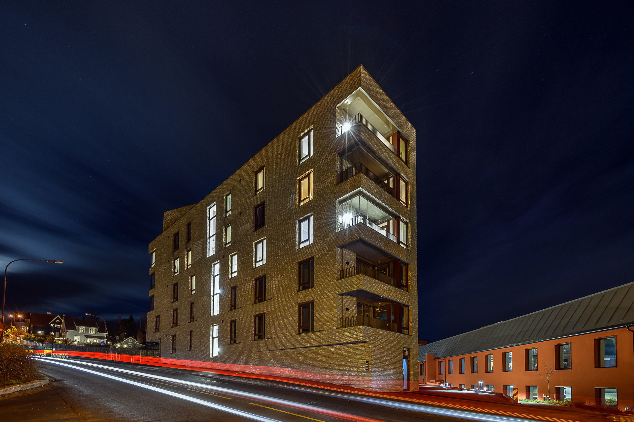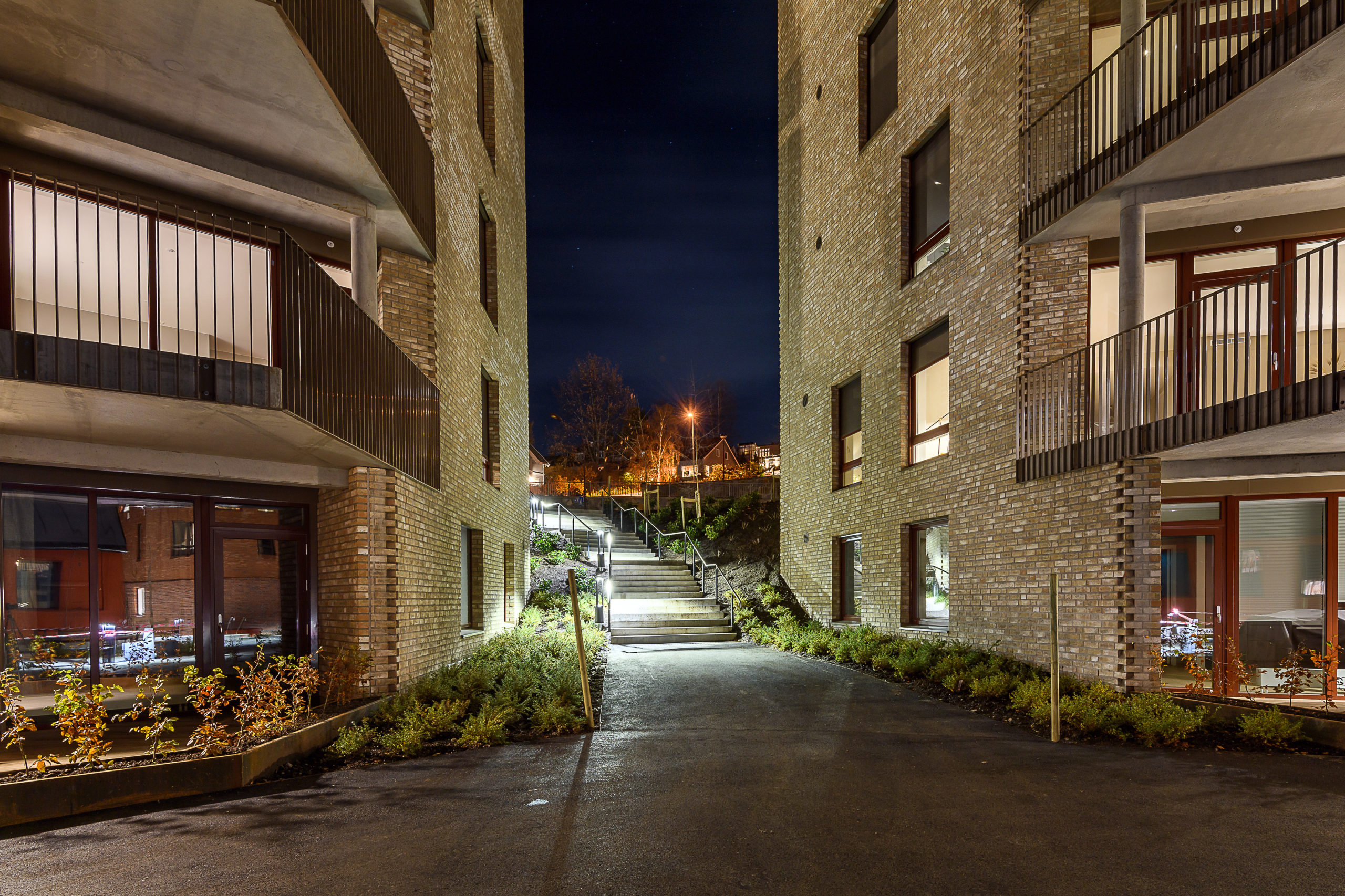 Great emphasis has been placed on external aesthetics and choice of materials. Bricks have been used on all new facades. A total of 330,000 bricks have been used, which gives it a robust and solid look. Mesnakvartalet has been well integrated with the old protected buildings around, where the old is combined with the new in a nice way.